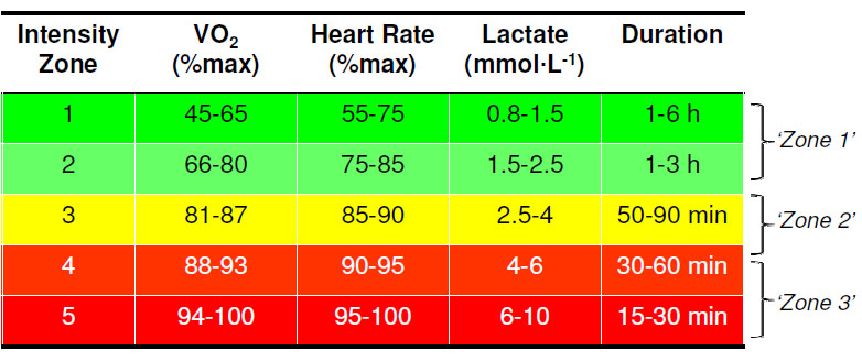 Pour mieux comprendre d’où proviennent les zones d’intensité et qu’est-ce qui les définit, je vais vous expliquer le système le plus facile à comprendre car il ne contient que 3 zones. Honnêtement, je pense que la plupart des sportifs d’endurance devrait se contenter de travailler avec ce système.